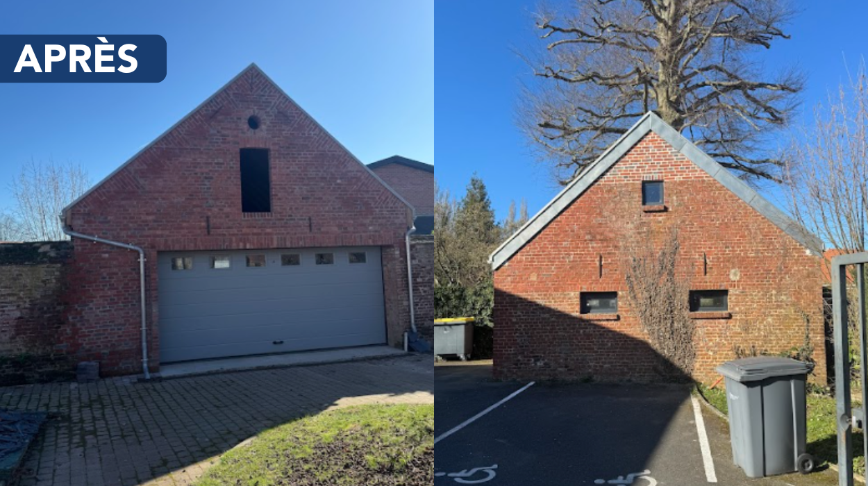 Le chantier a inclus la dépose de l’ancienne couverture du garage et la réalisation d’une nouvelle toiture en ardoises, assurant une protection durable contre les intempéries. Les travaux ont également compris la pose d’une porte de garage, garantissant un accès fonctionnel et sécurisé tout en s’intégrant harmonieusement à l’existant.