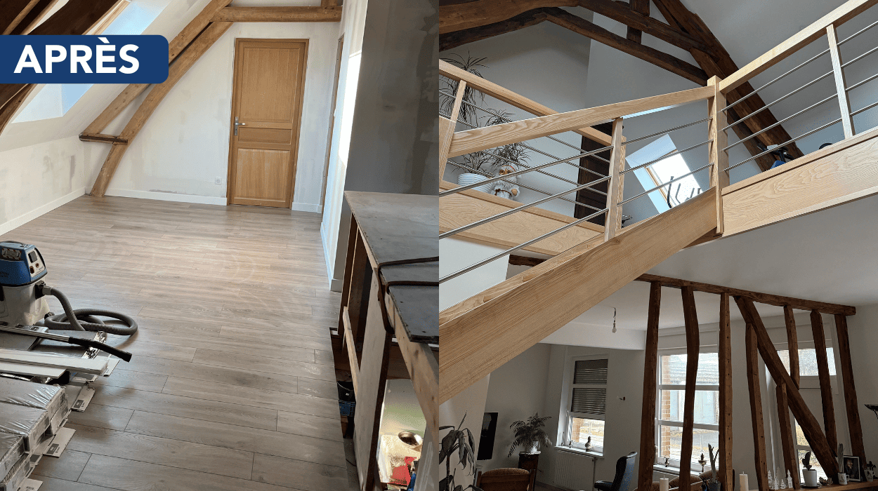 Nos équipes ont réalisé des travaux complets de rénovation des revêtements de sol ainsi que la pose d’un escalier, afin de moderniser l’intérieur et d’améliorer le confort au quotidien.