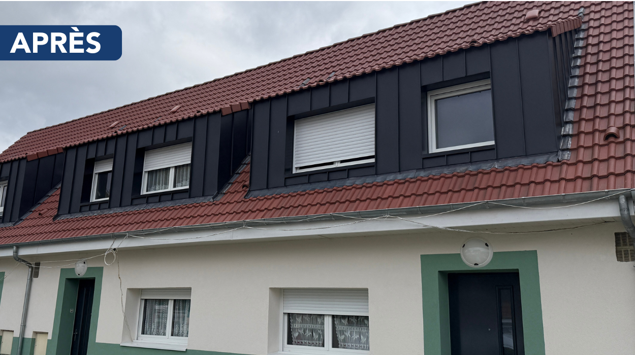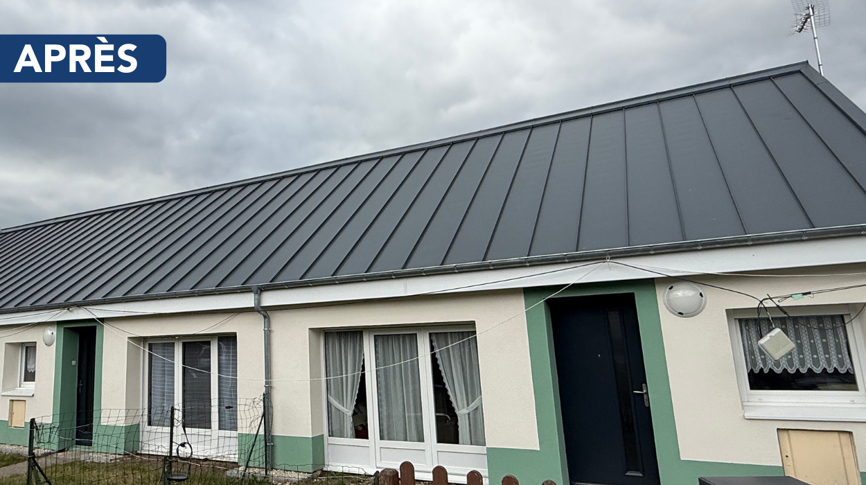 Sur ce second chantier, la toiture a été entièrement refaite avec un revêtement Maukatherm imitation joint debout, reconnu pour sa légèreté et sa performance.